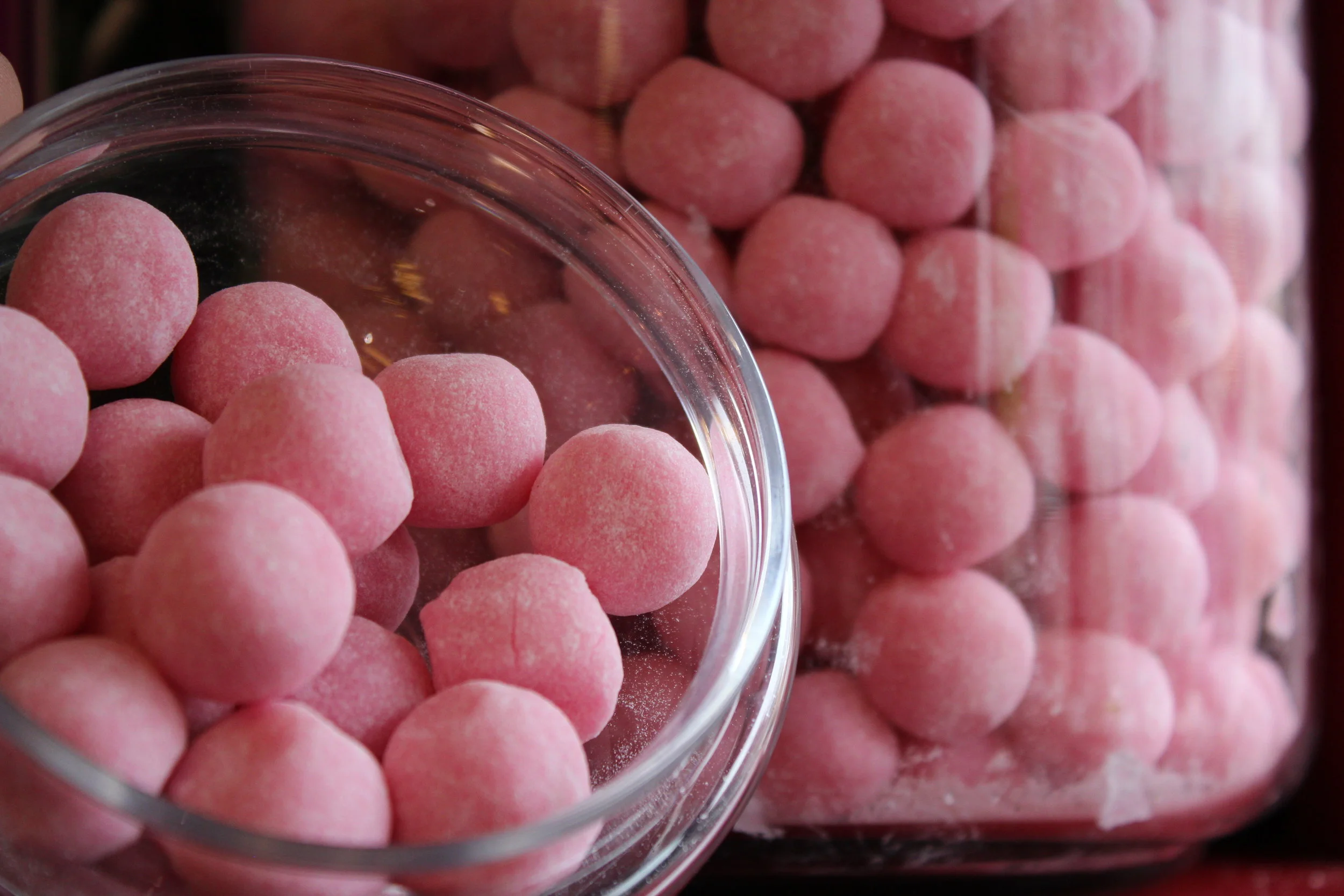 Sugar, glucose syrup, vegetable fats (palm, coconut), maltodextrin, acid: citric acid; flavouring, emulsifer: 473; colours: E131, E161b.